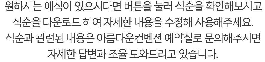 식순과 관련된 내용은 아름다운컨벤션 예약실과 상의하시면